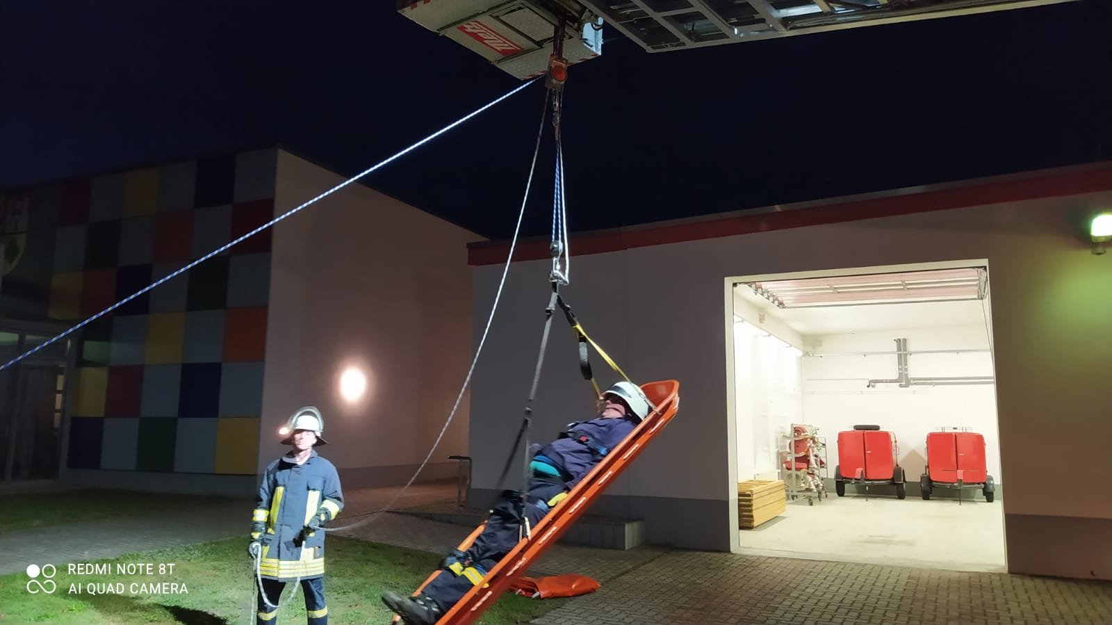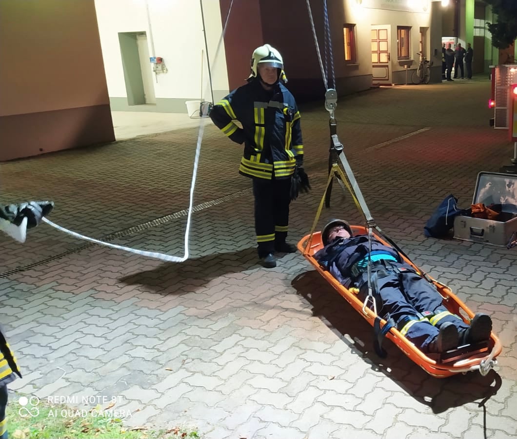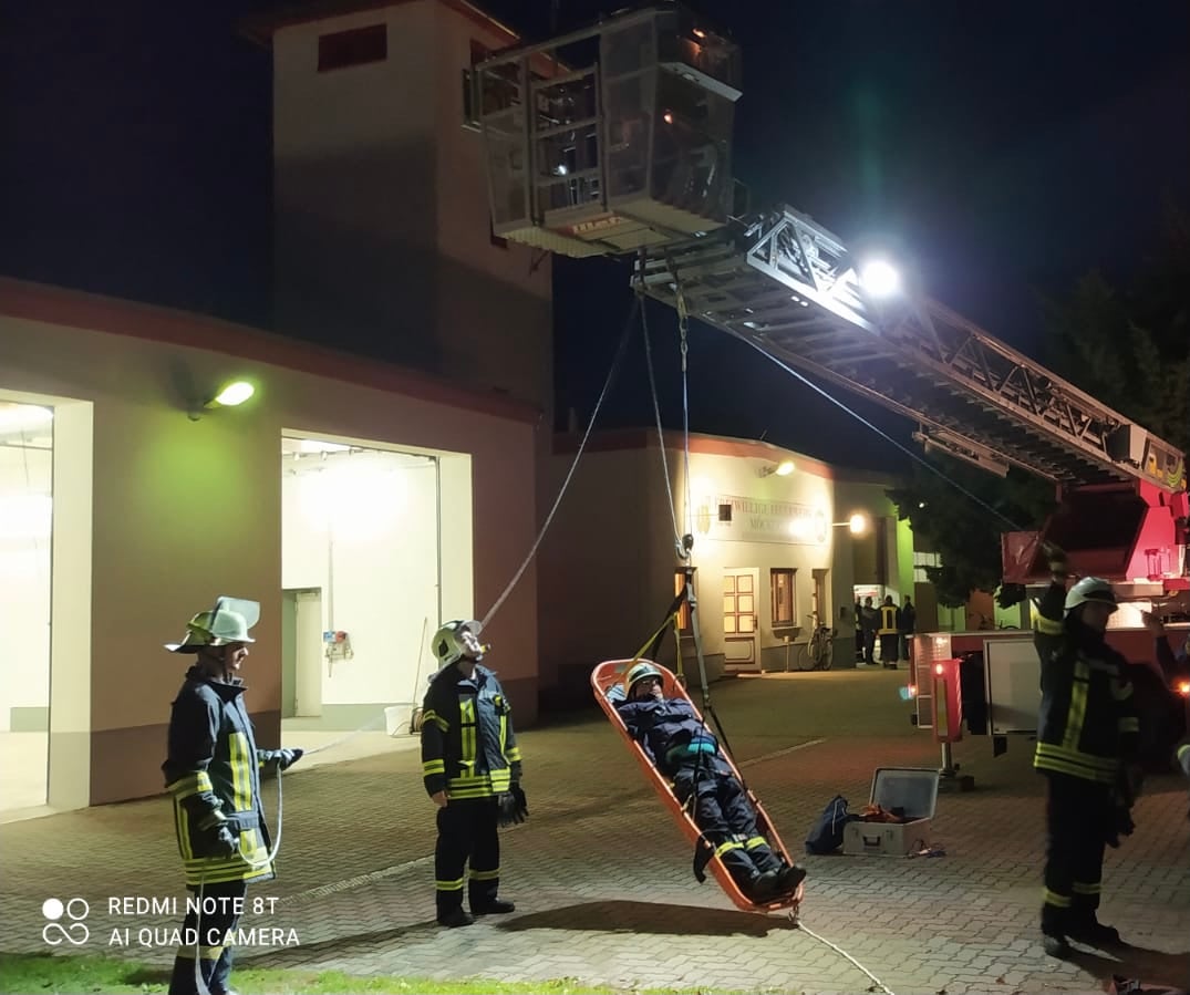 An diesem Dienstabend trainierten wir denn Umgang mit tragbaren Leitern sowie denn richtigen Einsatz der Schleifkorbtrage in Verbindung mit der Drehleiter und dem Rollgliss zum Retten von Personen aus Höhen und Tiefen.