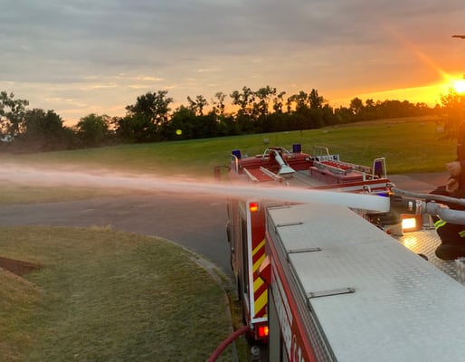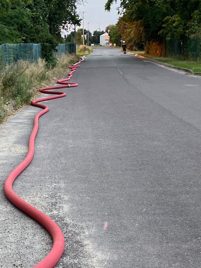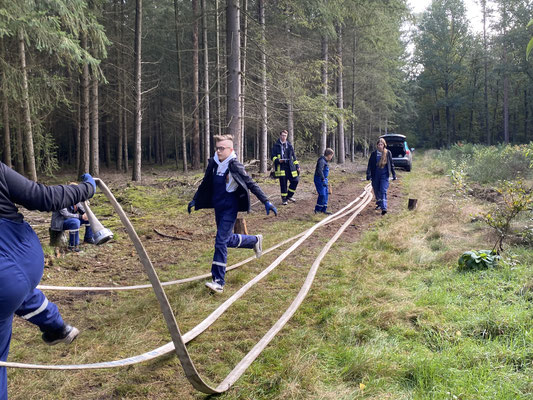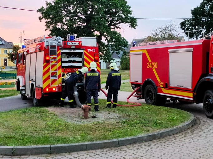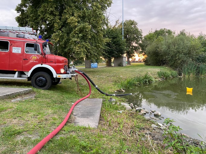 Im Rahmen unserer Ausbildung trainierten wir die Wasserförderung aus dem offenen Gewässer mit langer Wegstrecke sowie den Pendelverkehr mit den Tanklöschfahrzeugen mit Ansaugen aus einem Brunnen. Das Wasser nutzten wir zum auffüllen vom Vorratsbehälter im Gewerbegebiet.