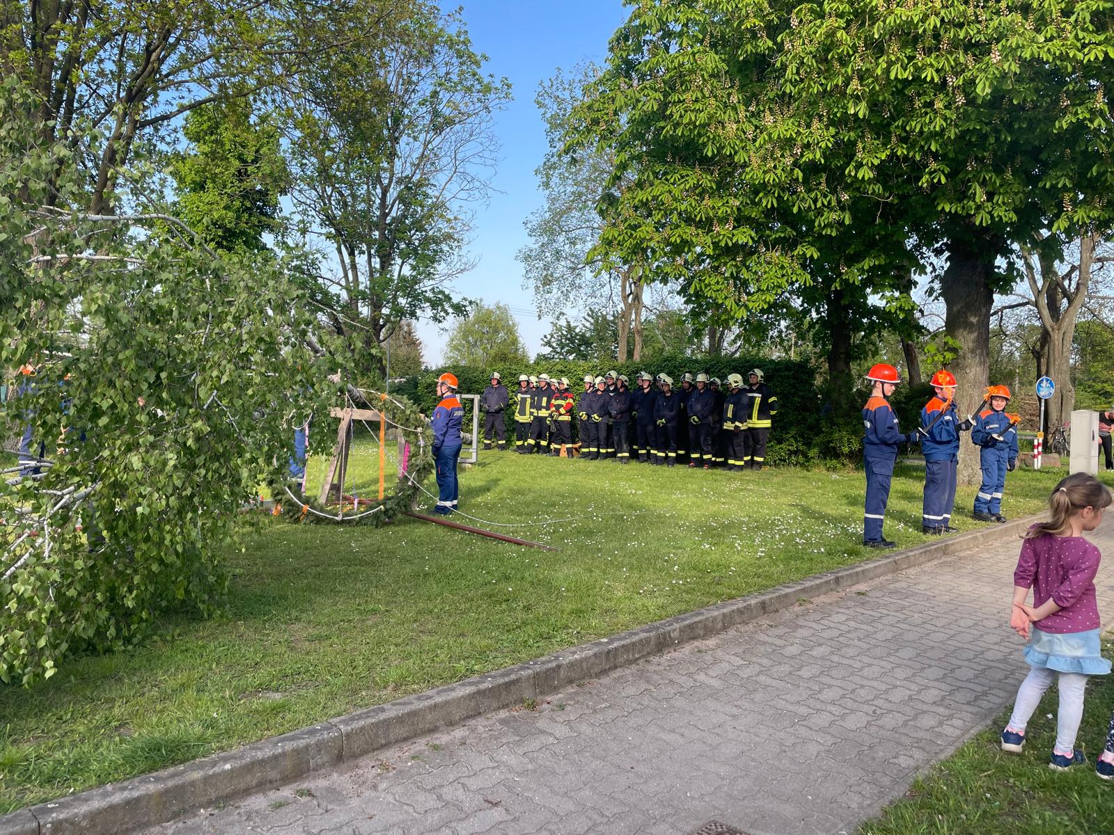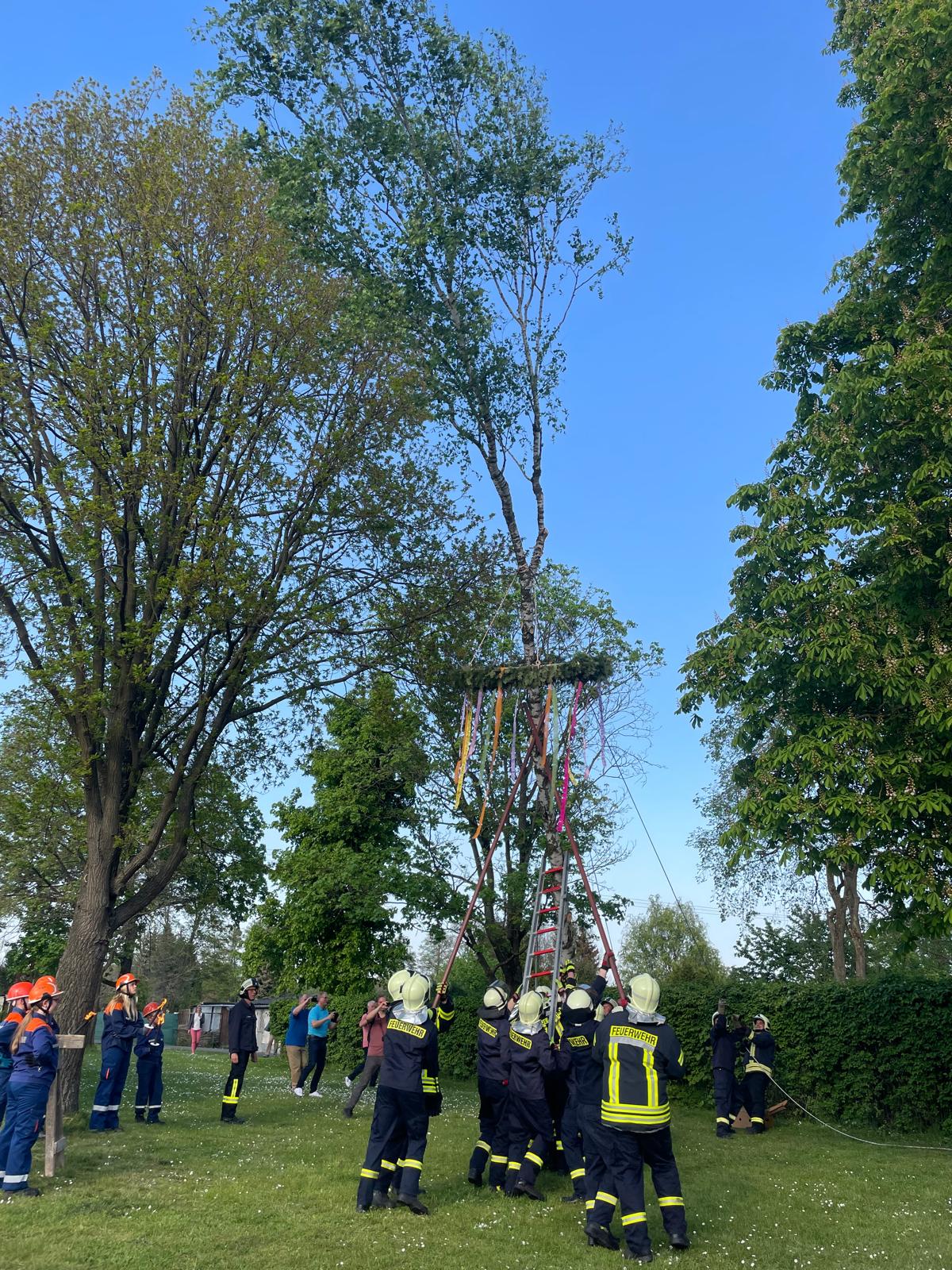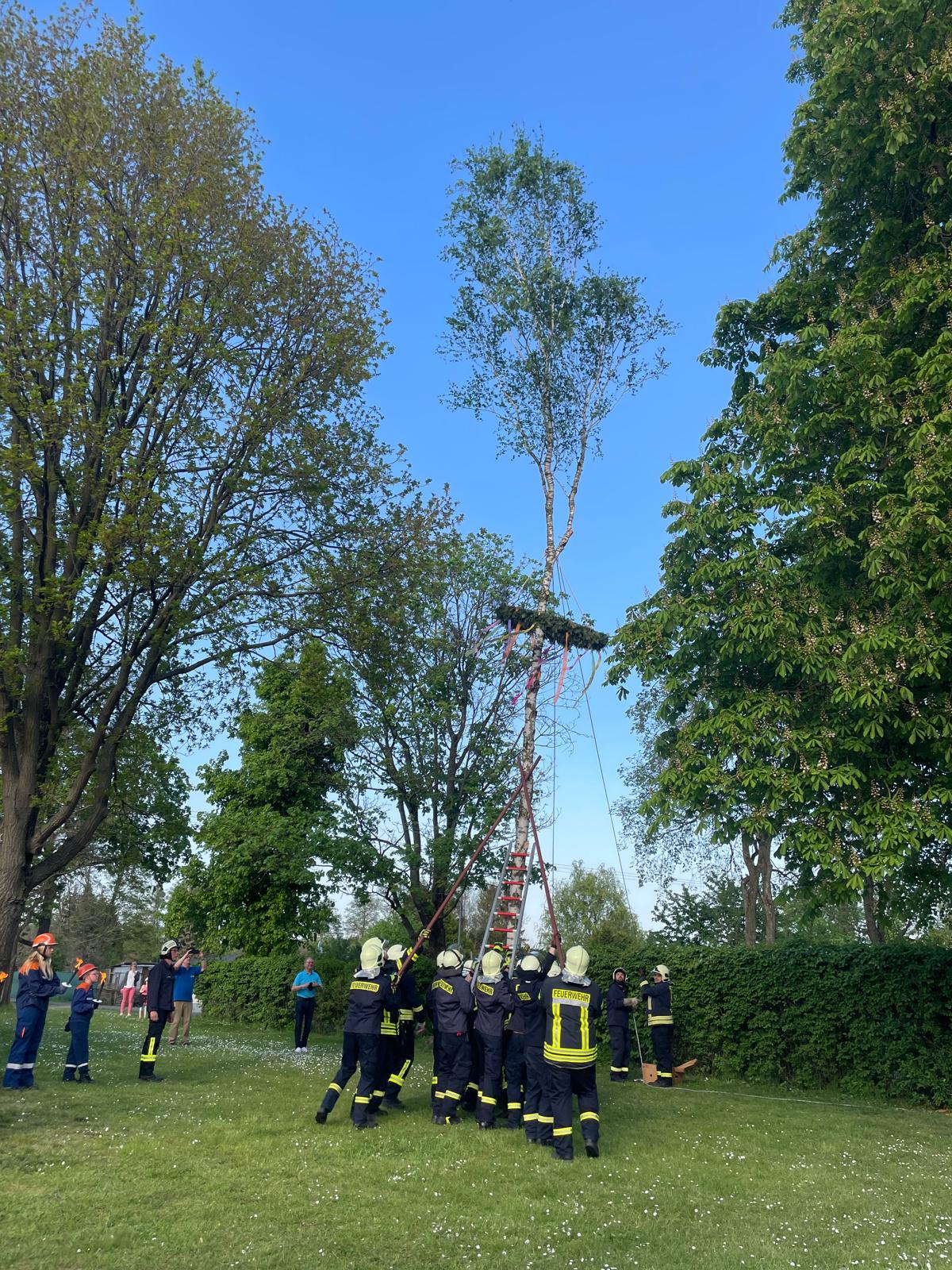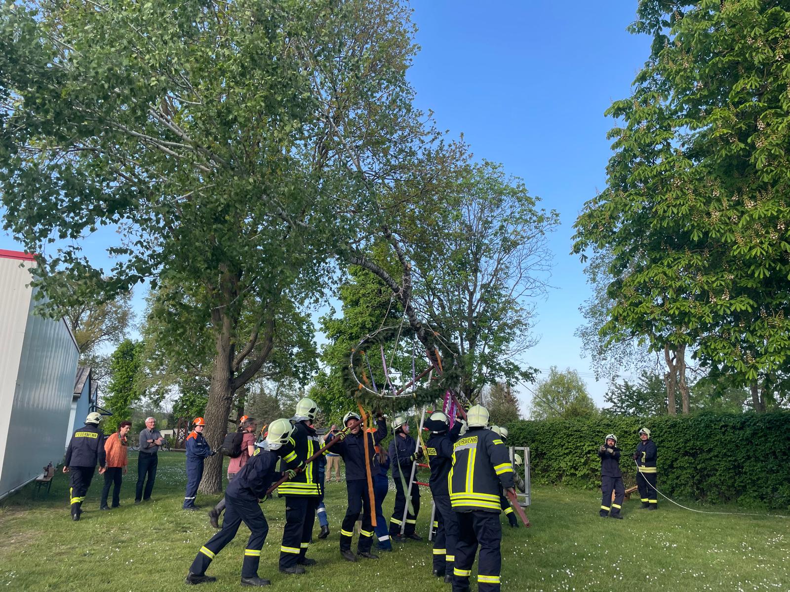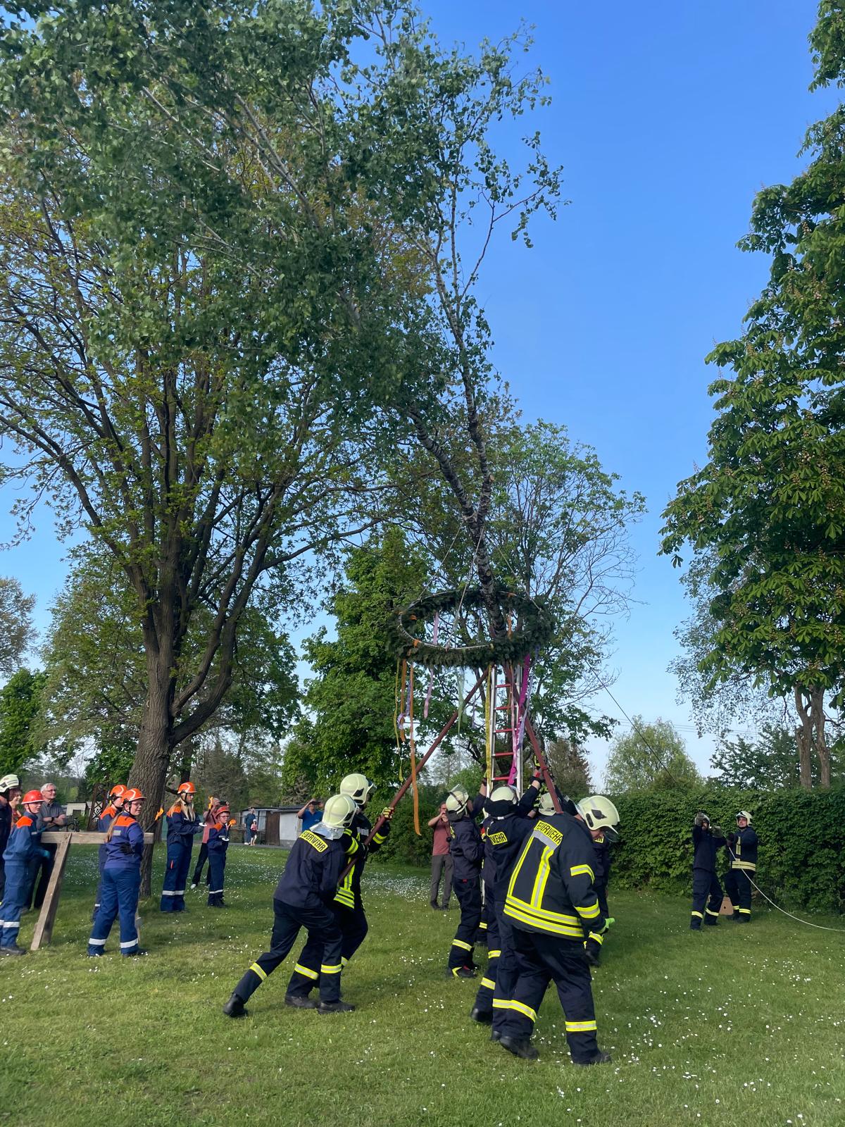Tradition und Teamgeist: Feuerwehr Möckern feiert Maibaumaufstellen mit Gemeinde