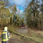 Von da an ging es kontinuierlich weiter. Zum Glück auch nur Sturmschäden durch umgestürzte Bäume die quer über der Fahrbahn lagen. Am späteren Nachmittag ereilte uns noch ein Einsatz zum Sichern einer Schornsteinabdeckung. Am Ende des Tages arbeiten die Kameradinnen und Kameraden elf Einsätze ab.