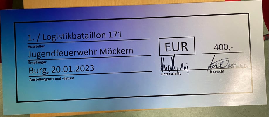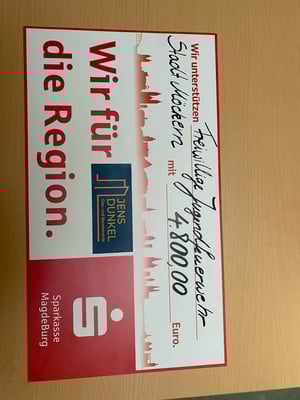 Die Jugendfeuerwehr konnte sich über eine Spende in erstaunlicher Höhe erfreuen. Die Firma Dunkel hat anlässlich Ihres 30-jährigen Jubiläums um Spenden für gemeinnützige Organisationen aus der Heimatregion gebeten. Wir als Jugendfeuerwehr waren, neben der Kita „Birkenhain“ Möckern, die Glücklichen und durften uns über eine unglaubliche Summe von 4.800,00 € freuen.