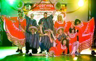 Ein Möckeraner Stadtfeuerwehrball ohne einen Auftritt des „Creativ Teams“ der Freiwilligen Feuerwehr Möckern? – Absolut unvorstellbar! Und daher sorgten auch am Sonnabendabend die Mitglieder der gut gelaunten Truppe in der Stadthalle von Möckern wieder mit ihren Showeinlagen für Stimmung. Als Mexikaner und Flamencotänzerinnen gekleidet, bewiesen sie einmal mehr viel Körperbeherrschung und noch mehr Humor. Als Special Guests mischten die Möckeraner Feuerwehrleute auch bei den Gerwischer Fire Girls mit, die ebenfalls zu dem kulturellen Rahmenprogramm der Tanzveranstaltung beitrugen. Über 250 Gäste – darunter ganz viele „Nicht-Feuerwehrleute“ – nutzten den diesjährigen Stadtoffenen Feuerwehrball, um zur Musik von DJ Celli in der Stadthalle zu tanzen. Zu Beginn der Veranstaltung begrüßten Ortswehrleiter Erik Ziepel, Vize-Wehrleiter Reinhard Stube und Detlef Friedrich als Vorsitzender des Feuerwehrfördervereines die Gäste der Veranstaltung. Quelle: Volksstimme S. Zechendorf